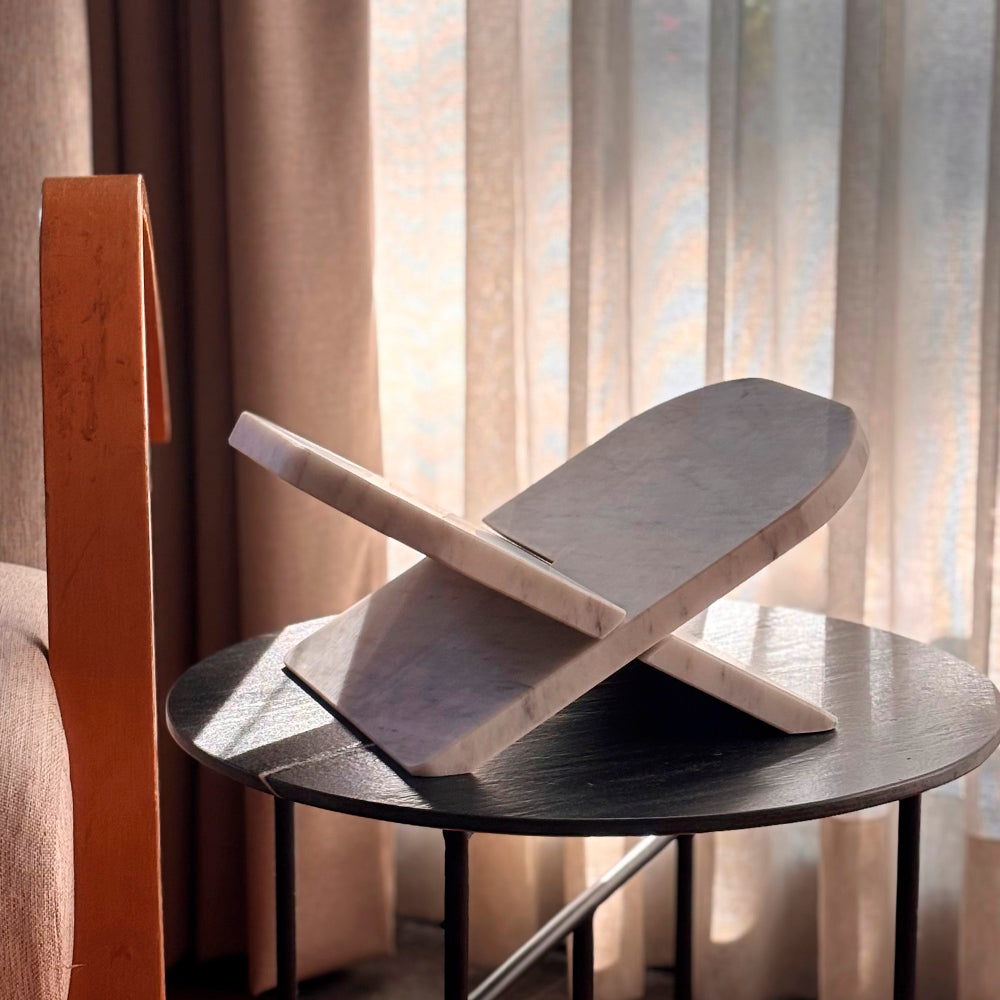 Eleva la forma en la que exhibes tus libros favoritos con nuestro Porta Libros Cruz, una pieza de diseño escultórico elaborada en mármol natural que combina funcionalidad, equilibrio y estética atemporal.
