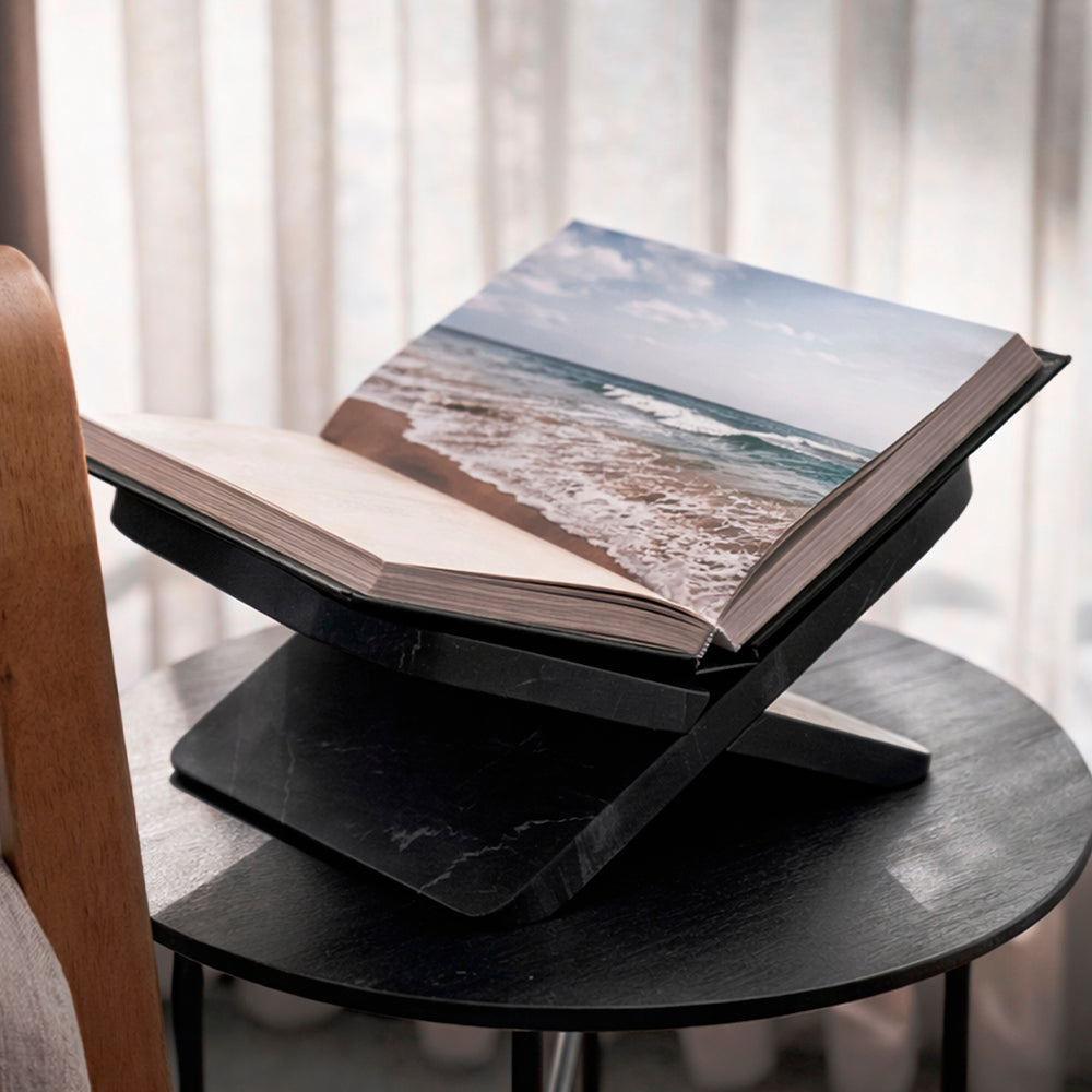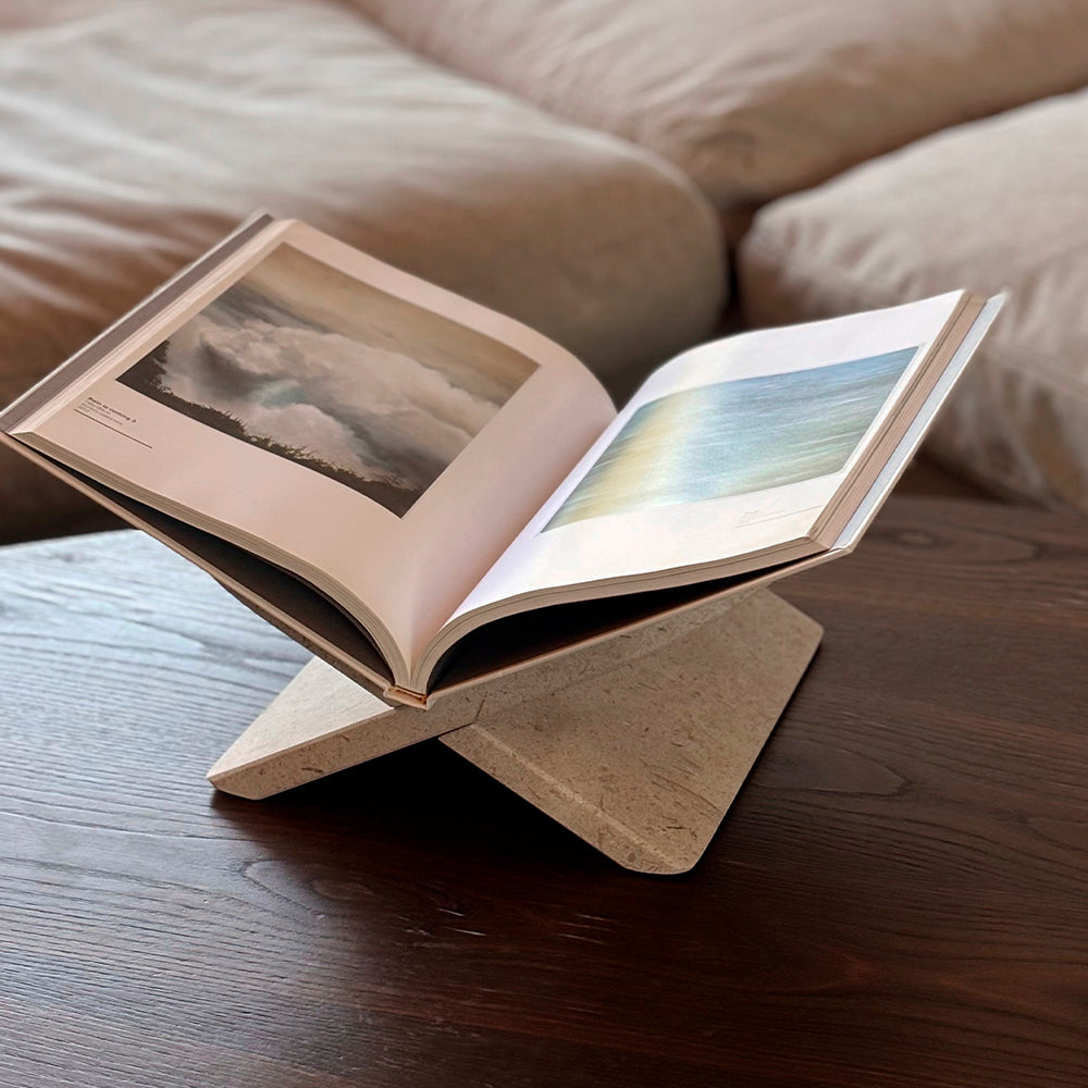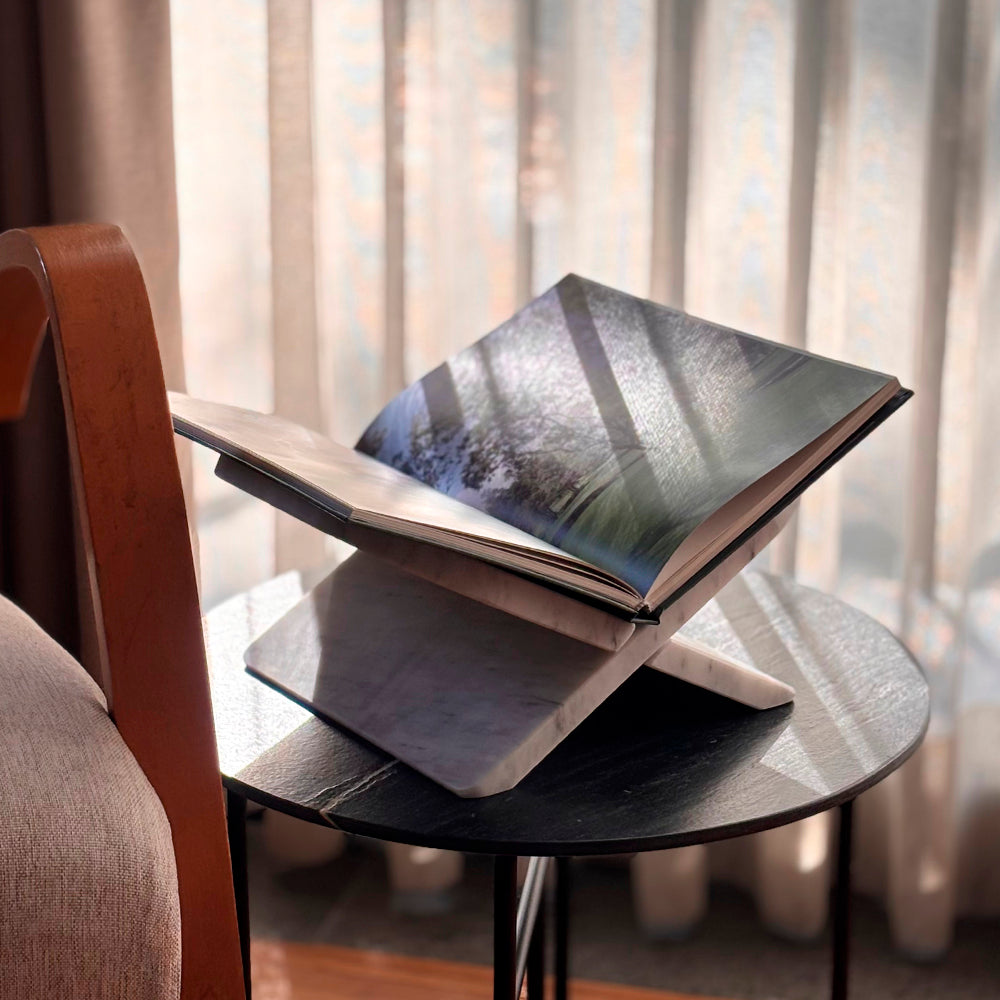 Su icónica forma en X, con esquinas suavemente redondeadas y proporciones cuidadosamente estudiadas, sostiene libros de gran formato de manera elegante y estable, convirtiéndolos en un verdadero objeto decorativo. Ideal para coffee table books, libros de arte, fotografía o arquitectura.