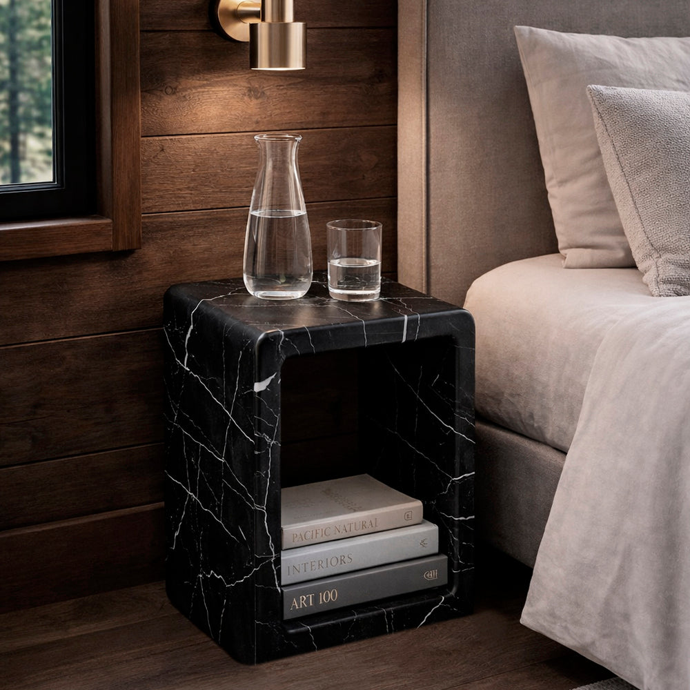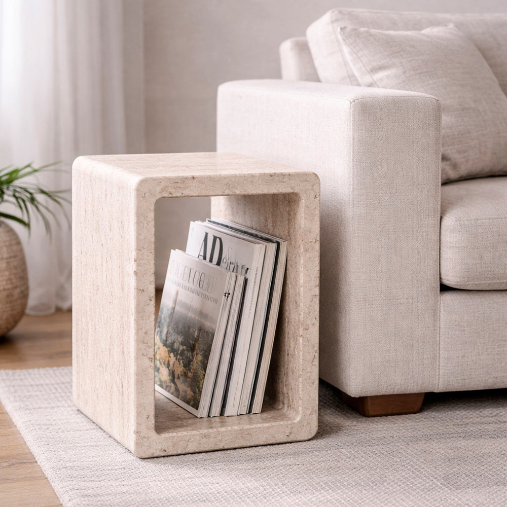 Nuestra Mesa Lateral Bengala con diseño contemporáneo está tallada en una sola pieza de piedra natural, lo que la distingue como un objeto escultórico de alto valor estético. A diferencia de mesas ensambladas, esta pieza monolítica no tiene uniones, lo que garantiza mayor durabilidad, estabilidad y una apariencia completamente limpia.