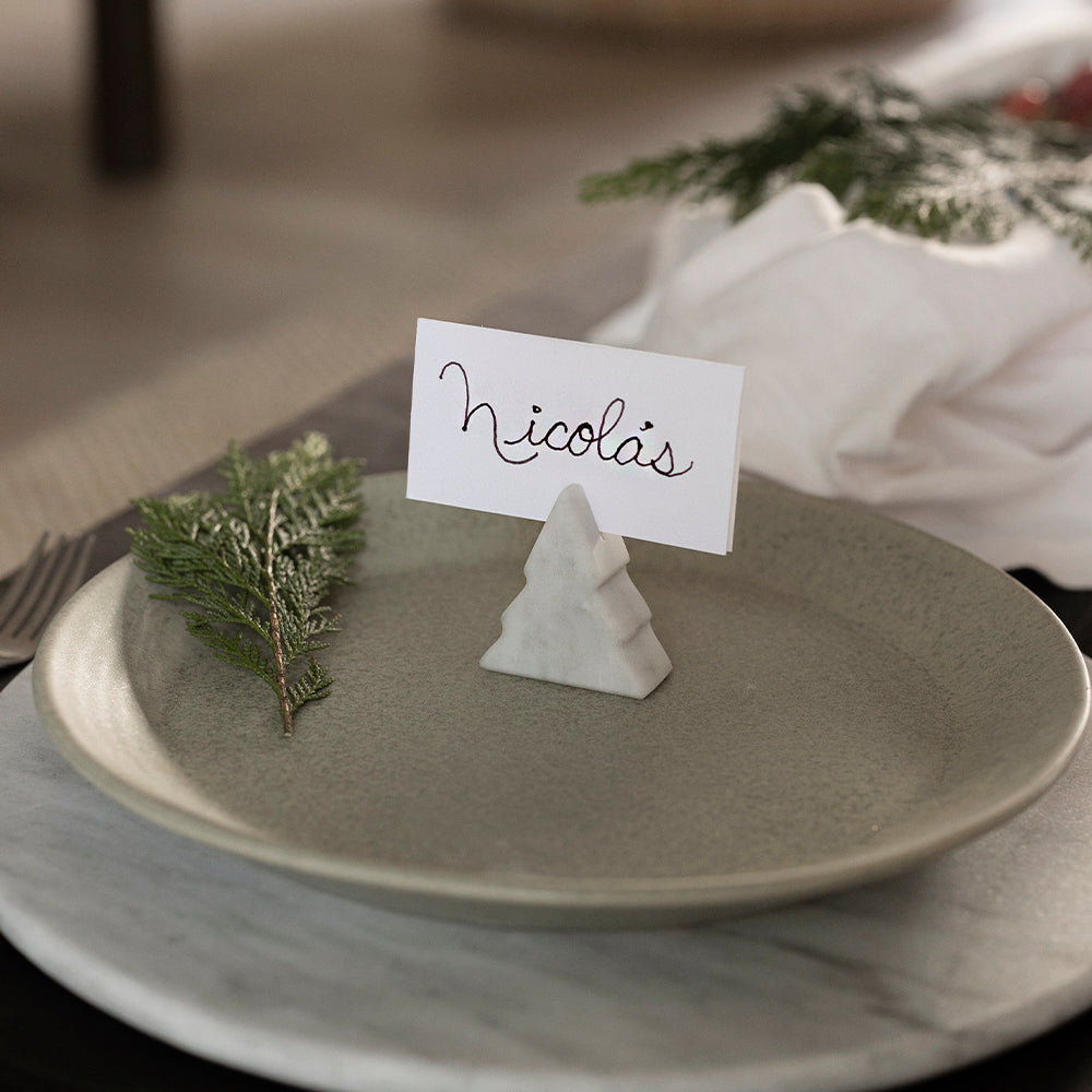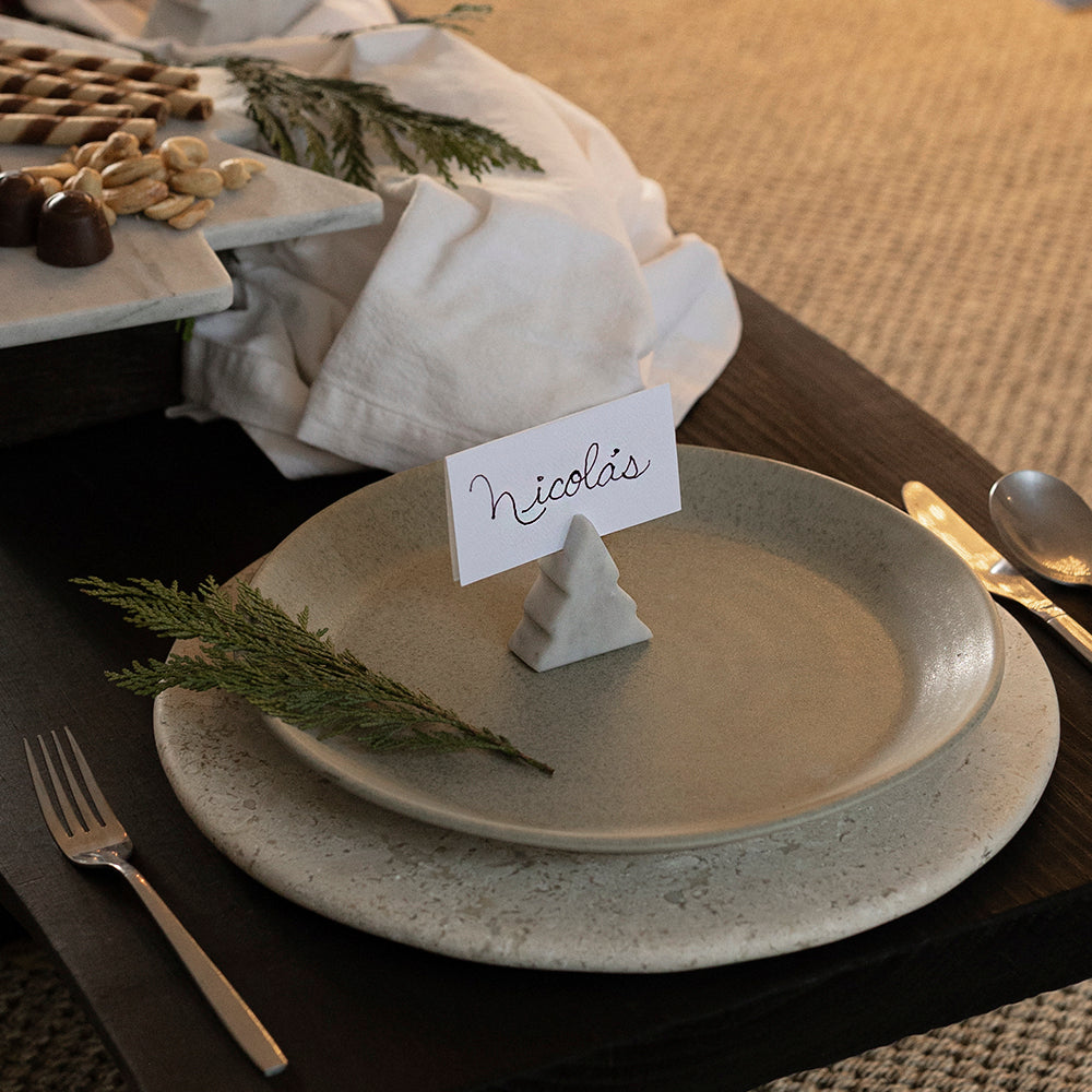 Disponibles en tres tonos que evocan la temporada —blanco, travertino y café—, estos pequeños árboles de mármol se integran con cualquier estilo de mesa, desde lo clásico hasta lo contemporáneo. Su forma simple y elegante refleja la esencia de la Navidad: cercanía, detalle y belleza en lo sencillo.